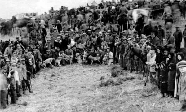 One of the most popular forms of entertainment in (he early days was the coyote hunt. Men. women and children for miles around gathered at the outer lines and worked into the center where the coyotes were destroyed. One settler wrote about letting an old "yeller dog" out through the lines. When (he center was reached they were told the "yeller cur was the worst chicken thief of the lot." |