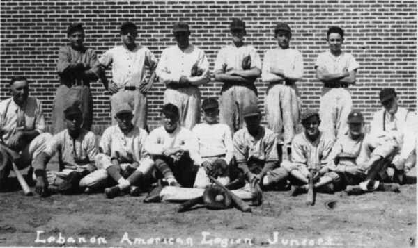 Lebanon American Legion Juniors at the State Legion Tournament in Cambridge, 1934. Lebanon was beaten in the Semi-finals. [L. ro R. bottom row] Charlie Wiggins, Jiggs Van Vleet, Pete Gill, Marvin Stephens. Dale Kieth, Wilbur [Wig] Childers, Lon Warner, Howard Daffer, Harold Williams. [L. to R. top row] Kieth Ingram, Henry Dean Overstake, Kenneth Norton. Dale Knight, Lowell Evans, Max Ingram. |