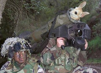 ![]() Two members of the 103rd prepare to fire their RPC (Rocket-Propelled Chihuahau) |